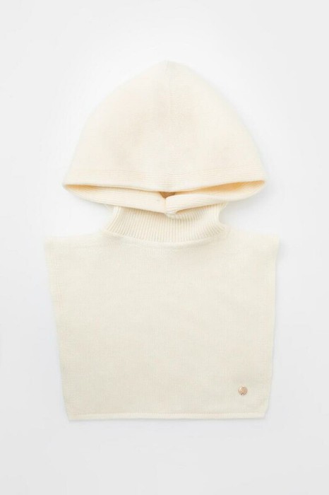 Теплый вязаный капор с глубоким капюшоном из шерсти и акрила. Шерсть в составе хорошо удерживает тепло, а волокна акрила делают изделие мягким и предотвращают деформацию и появление катышек. Лаконичный крой хорошо сочетается с верхней одеждой.