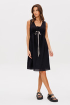 Легкое свободное платье с круглым вырезом на сборке, короткими рукавами из набивного трикотажа супрем.