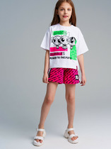 Футболка для мальчика из высококачественного трикотажного полотна. Оригинальный принт выполнен из стойких текстильных гипоаллергенных красителей. Для удобства в размерах 92 и 98 на спинке есть застежка на кнопки.