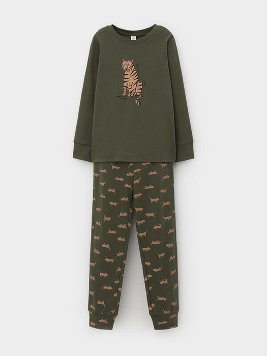 Акция по 23.12 Crockid пижама дет К 1541/хаки,полосатые тигры