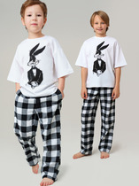 Новогодняя пижама из натурального хлопка.  Джемпер с длинными втачными рукавами и брюки с эластичной резинкой в поясе. Мягкие манжеты на рукавах и по низу брюк. Пижама отлично подойдёт для создания уютных домашних образов или в качестве подарка на Новый год и Рождество. Оригинальная набивка выполнена из стойких текстильных гипоаллергенных красителей. Изделие сохраняет цвет и форму после многократных стирок. Все трикотажные полотна производятся в соответствии с нормами швейцарского сертификата ЭкоТекс.