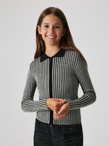 Бомбер с контрастными рукавами для мальчика. Изготовлен из мягкого петельчатого трикотажа. Застёгивается на кнопки. Воротник, манжеты и пояс - вязаные. Спереди карманы с листочкой.
