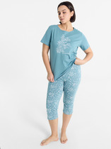 Комплект для комфортного сна и отдыха из трикотажного полотна в рубчик. Свободная футболка с V-образным вырезом. Брюки с мягким поясом на резинке удобно садятся по фигуре.