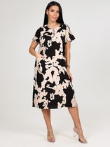 Вязаное платье длины миди с длинными рукавами с рукавами реглан из полушерсти. Выполнено гладью. Прямой силуэт хорошо садится по фигуре. Манжеты и низ изделия вывязаны широкой резинкой, благодаря которой края не растягиваются.