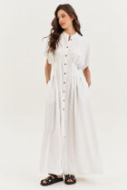 Удлиненное трикотажное платье из длинноволокнистого гребенного хлопка. Спущенное плечо придает изделию свободный силуэт.