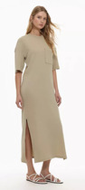 Легкое свободное платье с круглым вырезом на сборке, короткими рукавами из набивного трикотажа супрем.