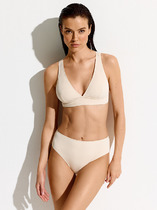 Лиф «триангл» на широком стане без застежки обеспечивает комфортную поддержку. Съемные вкладыши позволяют создать дополнительный объем. Трусы «слипы» с высокой линией талии и высоким вырезом бедра подчеркивают длину ног.