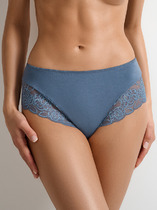 Трусы-панти с низкой посадкой  из качественного хлопка и  изящными кружевными вставками по ножкам спереди и сзади. Элегантное кружево с цветочным орнаментом придает модели изысканный вид.