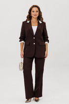 Состав: 50%Вис 48%ПЭ 2%ПУ; ПОДКЛАДКА- 100%ПЭ Параметры модели на первом фото: Рост 168, бюст 82, талия 60, бедра 90Брюки прямого кроя из мягкой эластичной поливискозы с фактурой. Классическая форма - база на все времена. По бокам два кармана, с задней части изделия один карман в листочку с фирменным логотипом бренда. Совет стилиста: носите в костюме с жакетм D21.069 как хорошую альтернативу вместо привычного офисного дресс-кода. С футболкой, курткой из денима и кедами на прогулку.
