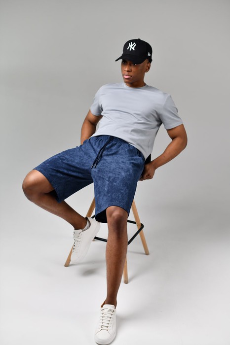 Мужские удлиненные шорты (бриджи) из трикотажного полотна с эффектом "варенки". Модель с боковыми карманами, на притачном поясе с отстроченной с эластичной тесьмой и шнуром в нем для регулирования степени прилегания.
