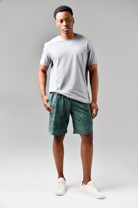 Мужские удлиненные шорты (бриджи) из трикотажного полотна с эффектом "варенки". Модель с боковыми карманами, на притачном поясе с отстроченной с эластичной тесьмой и шнуром в нем для регулирования степени прилегания.