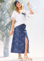 Юбка женская на талии, плотно облегающая вверху и прямая к низу, на подкладке, длиной до коленей, с застежкой на потайную тесьму-молнию в левом боковом шве. Переднее полотнище юбки со средним швом, который заканчивается разрезом, с одной вытачкой на каждой половинке. Заднее полотнище с 4-мя вытачками. Верхний срез юбки обработан обтачкой. Декор может отличаться от представленного на фотографии.Длина середины спинки – 59см.