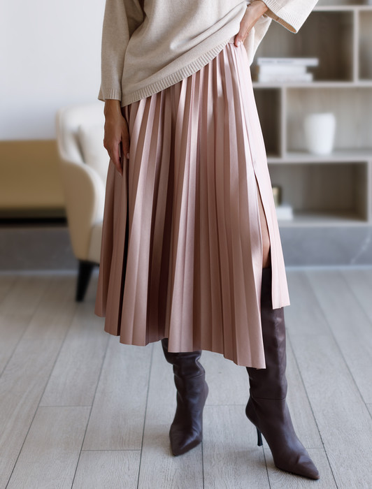 Состав: 50%ПУ (полиуретан) 50%ПЭ Параметры модели на первом фото: Рост 172, бюст 88, талия 64, бедра 88Асимметричная плиссированная юбка выполнена из мягкой эко-кожи. Посадка на талии акцентирована поясом из эластичной вельветовой ленты. Перламутровое покрытие изящно сияет и легко поможет создать роскошный вечерний образ. На уровне ассиметричной линии спереди находится разрез, открывающий ноги. Атласное внутреннее покрытие обеспечивает идеальный комфорт при носке с колготками.