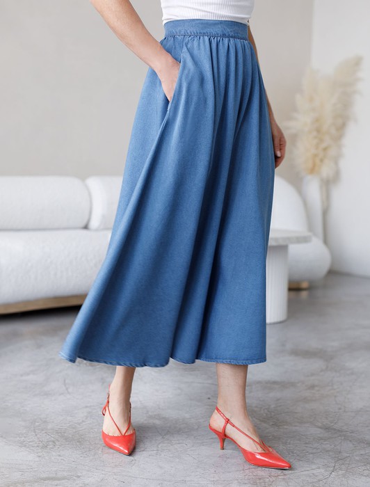 АКЦИЯ Юбка полусолнце из лиоцелла под деним