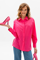 Блузка с удлиненными манжетами выполнена из тончайших нитей плотного сатина, плетение которых создает полуматовый блеск, напоминающий натуральный шёлк. На спинке изделия фирменный логотип бренда. Застежка на золотистые пуговицы. Совет стилиста: сочетайте блузку в костюме с брюками D24.534 и юбкой D26.461 чтобы создать роскошный праздничный образ, с классическими брюками или блестящим денимом.