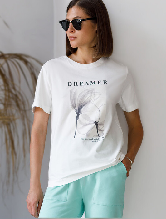 Совместные закупки Екатеринбург Женская одежда Футболки — Акция Vilatte Футболка из премиального хлопка с авторским принтом D49.983 белый