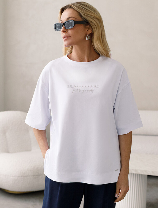 Акция Vilatte Футболка свободного кроя с авторским принтом D49.082 белый_be dif
