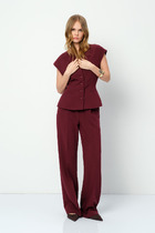 Прямые брюки выполнены из плотного трикотажа джерси. Модель дополнена боковыми карманами. Посадка на талии фиксируется эластичным поясом на резинке. Заутюженные стрелки визуально вытягивают силуэт. Изделие хорошо держит форму и почти не мнется во время использования.
