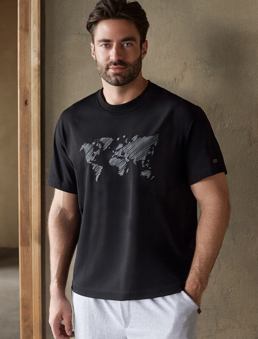 Совместные закупки Екатеринбург Мужская одежда Футболки — Акция Vilatte Свободная футболка с авторским принтом U49.048 черный_карта