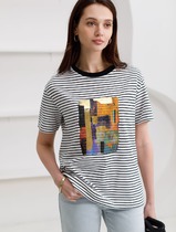 Свободная футболка в черно-белую полоску с принтом из премиального хлопка с элас