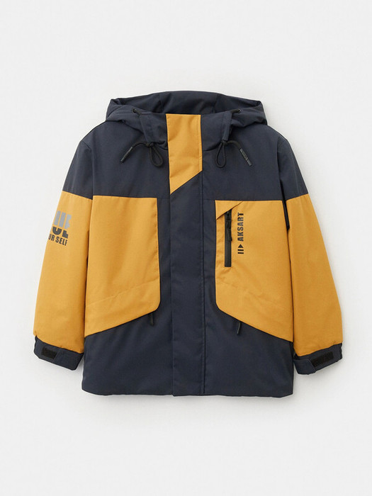Удлиненная куртка из мембранной ткани с лаконичной черной фурнитурой. Удобная длина, скрывающая школьный пиджак. Центральные части полочек и рукава выполнены из отделочной ткани. На куртке 4 кармана. На левой полочке карман с вертикальным входом. Параллельно ему выполнен лаконичный накат. Под клапанами входы боковые карманы. Внутренний карман накладной на ленте «велькро». Фронтальная молния под ветрозащитной планкой. Ветрозащитная планка и клапаны карманов фиксируются потайными кнопками. Низ рукавов дополнен манжетами на эластичной тесьме и патами с лентой «велькро». Капюшон несъемный. Регулировка лицевой части капюшона выполнена с помощью кулисы со шнуром. На правом рукаве эффектный термопринт.Характеристики:Ткань верха: Liverpool WR membraneПодклад: полибушет / п/э