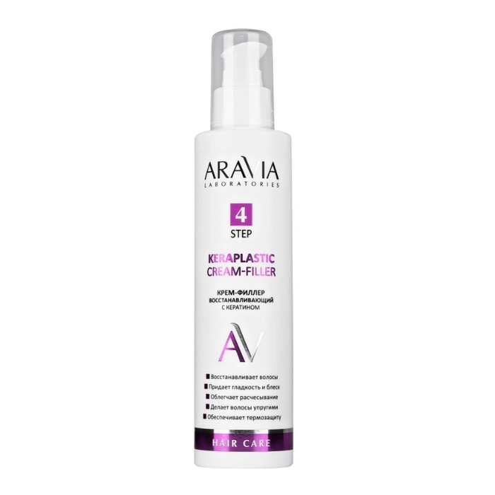 Крем-филлер глубоко восстанавливает, питает и увлажняет ослабленные волосы. Защищает их от негативного воздействия окружающей среды, обеспечивает термозащиту. Придает волосам гладкость, блеск, снимает статическое электричество и облегчает расчесывание. Делает волосы плотными, эластичными и упругими. Защищает волосы от сечения. Не утяжеляет.. Показания к применению: Для всех типов волос. Восстанавливает волосы. Придает гладкость и блеск. Облегчает расчесывание. Делает волосы упругими. Обеспечивает термозащиту.Основные активные компоненты: Кератин, Д-пантенол, витамин Е.Способ применения: Равномерно нанесите небольшое количество крема на слегка влажные волосы, избегая прикорневой зоны. Не требует смывания. Рекомендуется для регулярного применения.*Внешний вид товара может отличаться от фотографий на сайте.