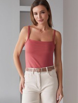 Базовый топ на тонких бретелях. Модель выполнена по бесшовной технологии из мягкой эластичной микрофибры, без чашки и уплотнения. Широкая резинка по нижнему краю обеспечивает мягкую комфортную поддержку груди. Тонкие эластичные бретели не регулируются по длине