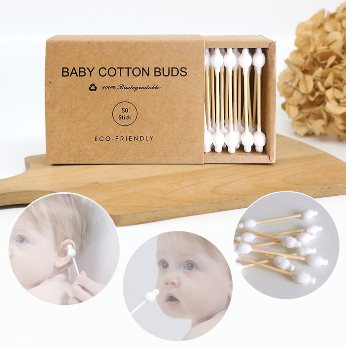Ватные палочки с ограничителем – надежное и безопасное средство ухода за новорожденными и маленькими детьми. В каждой упаковке содержится 50 палочек, которые идеально подходят для ежедневной гигиены. Эти палочки специально разработаны с учетом особенностей анатомии младенцев, позволяя родителям легко и без риска ухаживать за ушами и носиком малыша., Главной особенностью данных палочек является ограничитель, который предотвращает слишком глубокое введение палочки, что делает их абсолютно безопасными для использования даже у самым маленьких детей. Это особенно важно для обеспечения комфорта и защиты здоровья вашего ребенка., Эти палочки – неотъемлемая часть аптечки и ухода за новорожденным., Экологичная альтернатива пластиковым ватным палочкам. Бамбук на 100% разлагается микроорганизмами и может быть сожжен без загрязнения окружающей среды. Кроме того, бамбук – это возобновляемый ресурс. Он растет очень быстро, нуждается в небольшом количестве воды, и ему не требуются никакие удобрения.
