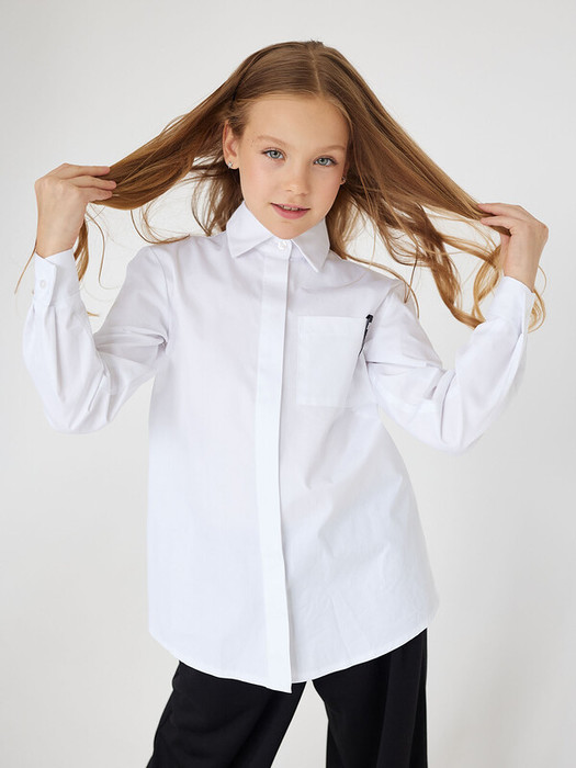 Блузка с длинным рукавом для девочки. Карман на груди, застежка на петли пуговицы. Школьная блузка прямого покроя из качественной ткани, в составе которой натуральный хлопок и полиэстер отличается особой износостойкостью и приятна к телу. Характеристики:Ткань:Сорочечная ткань 60%хлопок, 40%полиэстерПроизводитель: Batik