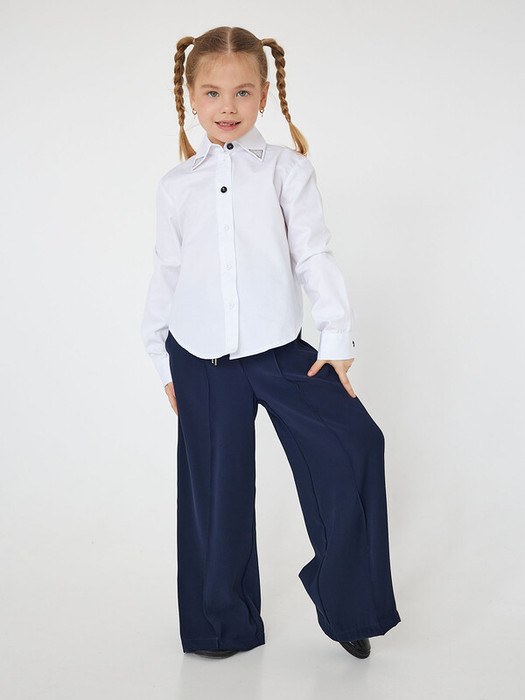 Блузка для девочки белая с длинными рукавами и нашивками на воротнике. Застежка на петли пуговицы. Блузка с воротничком, объемными рукавами на манжете предназначена для девочек 7-10 лет. Характеристики:Ткань:Сорочечная ткань 60%хлопок, 40%полиэстер Производитель: Batik