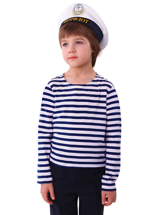 Футболка для мальчика с длинным рукавом представляет собой полосатую тельняшку с круглым вырезом горловины. Прямой крой, натуральный хлопок. Подойдет для дома, повседневной носки и создания карнавального образа.Характеристики:Ткань:  95% хлопок, 5% лайкраПроизводитель: batik