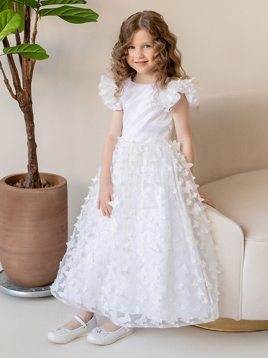 Нарядное платье Рэйчел белое с пышной юбкой и шлейфом. На спинке имеется поясок, чтобы дополнительно утянуть талию. Подкладка 100% хлопок. Платье украшено объемным узором в виде бабочек. Короткие рукава с оборками. Платье подойдет для празднования выпускного, дня Рождения, Нового года.Характеристики:Ткань верха: Сатин - Полиэстер Сетка - ПолиэстерПодклад 100% хлопокПроизводитель: batik
