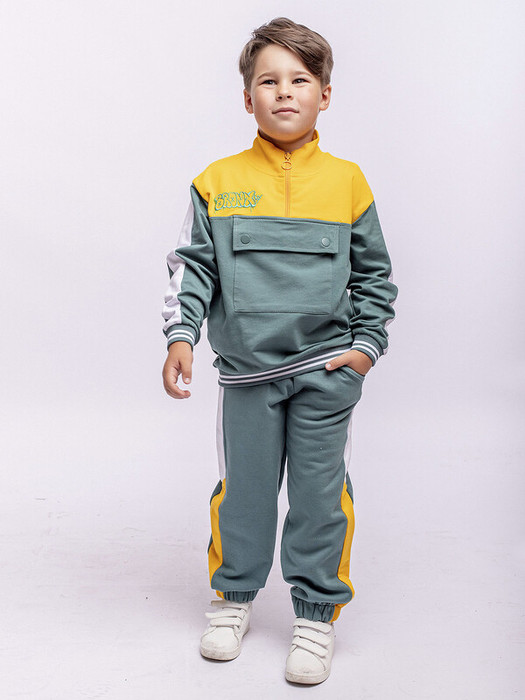 Анорак-пуловер для мальчика с длинным рукавом, высоким воротником на молнии, накладным карманом.