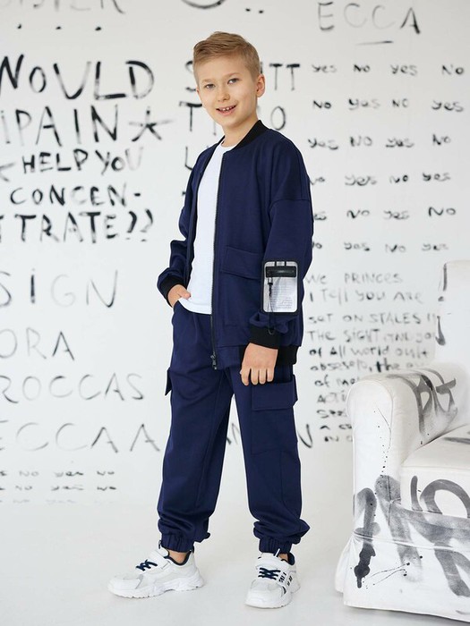 Стильный детский бомбер черного цвета для мальчиков. Трикотажный бомбер для подростка выполнен из качественного полотна и отлично держит форму. Низ изделия и рукава на манжете, воротник-стойка. Удобные большие карманы и застежка на молнию. Бомбер подойдет как для классического образа, так и для спортивного. Отлично смотрится как костюм вместе с нашими брюками-карго Данил.Характеристики:Ткань:
