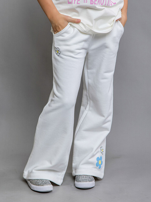 Брюки для девочки из футера в молочной расцветке с карманами. Брюки клеш детские – тренд 2024 года. Выполнены из ткани премиум качества. Принт в виде цветов с одной стороны.Характеристики:Ткань:Футер 3х нитка 90% хлопок 10% полиэстерПроизводитель: batik