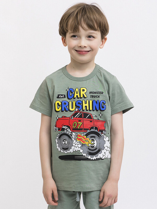 Футболка с коротким рукавом для мальчика из натурального хлопка. Стильная расцветка хаки и принт. Классический круглый вырез – удобная посадка, не натирает шею. Футболка идеальна для садика, прогулок и активных игр. Легко комбинируется с любой детской одеждой: брюками, шортами, джинсами.Характеристики:Ткань: 100% хлопокПроизводитель: batik
