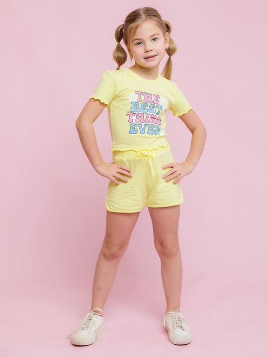 Футболка для девочки с коротким рукавом желтая. Укороченная футболка с ярким принтом выполнена из мягкого хлопкового трикотажа, который прост в уходе, позволяет телу дышать и комфортен в носке. Облегающий крой не сковывает движения, позволяя ребенку быть активным.Характеристики:Ткань: Супрем 92% хлопок 8% эластанПроизводитель: batik