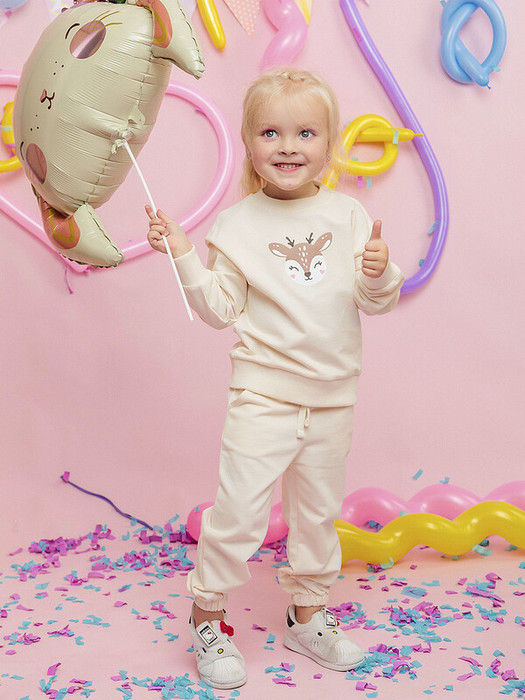 Комплект детский трикотажный в бежевой расцветке: джемпер и брюки. Стильный, уютный спортивный костюм бренда batik станет отличным дополнением базового гардероба девочек и мальчиков. В состав комплекта-двойки входят свитшот и брюки. Свитшот с эластичными манжетами и принтом в виде мордочки олененка на груди. Брюки однотонные с резинкой по низу и боковыми карманами.Характеристики:Ткань: Футер 2х нитка 100% хлопокПроизводитель: batik