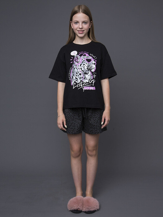 Пижамный комплект для девочки состоит из футболки с коротким рукавом и шорт в черном цвете. Мягкая дышащая ткань обеспечивает комфорт в любое время года. Идеальный вариант для повседневной носки.Характеристики:Ткань: Супрем пенье 100% хлопокПроизводитель: batik