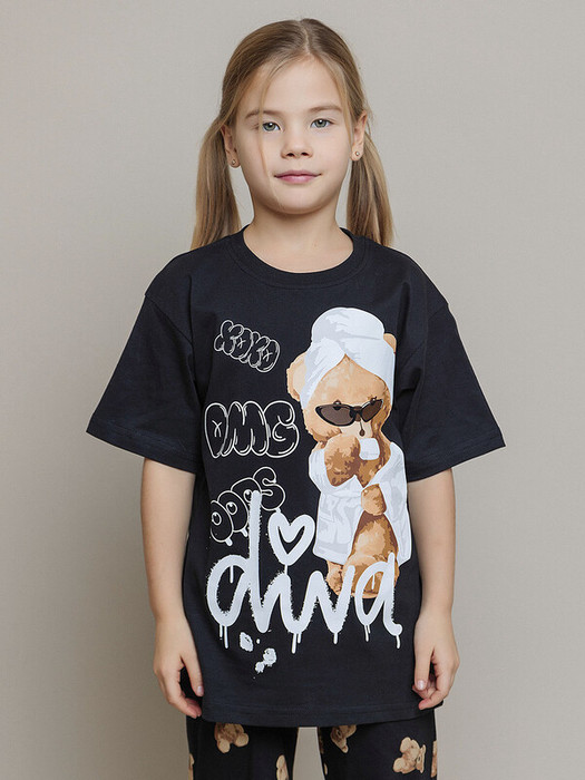 Пижама для девочки черная: футболка с коротким рукавом и брюки. Милая пижама от batik - идеальный выбор для комфортного сна. Этот детский домашний костюм выполнен из мягкого хлопка, обеспечивает уют и свободу движений.Характеристики:Ткань: Супрем пенье 100% хлопокПроизводитель: batik