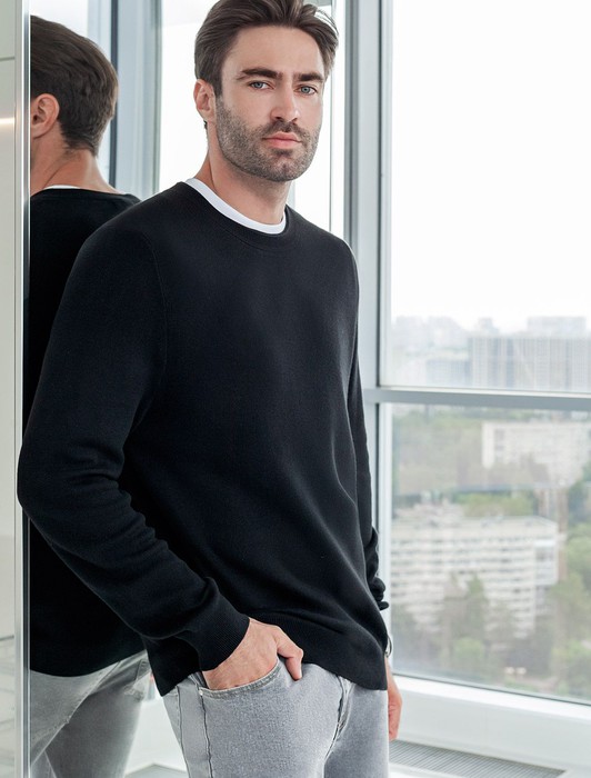 Состав: 55%Хлопок 45%ПАН (акрил) Параметры модели на первом фото: Рост 190, бюст 108, талия 87, бедра 104Лаконичный черный джемпер – универсальное решение в гардеробе: он удачно дополнит и повседневный образ с джинсами, и комплект для офиса с нестрогим дресс-кодом. Для изготовления модели использовали пряжу из премиального хлопока с добавлением акрила для особенной мягкости и тепла. Кроме того, акрил в составе способствует долговечности изделия и меньшей сминаемости. Внизу изделия нашивка бренда из эко-кожи.