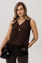 Но настоящая поэзия скрыта внизу: великолепное кружево, окаймляющее край, добавляет ноту романтики и загадочности. Он создан для того, чтобы его носить и как изюминку образа, кокетливо выглядывающую из-под строгого жакета или уютного свитера, и как самостоятельный акцент для особого случая.