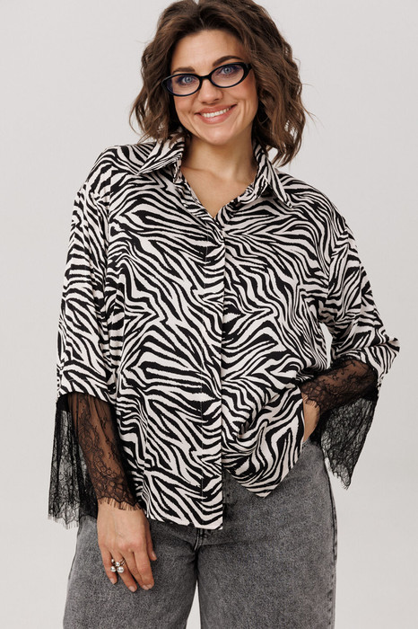Роскошная рубашка от Анелли с фигурным низом в цвете «зебра». Мягкое спущенное плечо задаёт плавный ритм всему силуэту, а отложной воротник и идеально скрытая застёжка на пуговицах говорят о внимании к деталям.