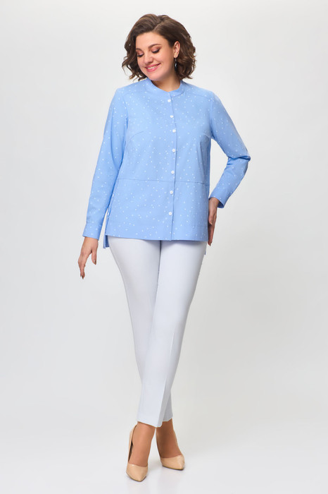 Блуза ДаЛи 5373Б голубой+горох