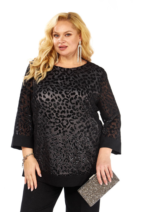 Блузка полуприлегающего силуэта выполнена из легкого шифона с дизайнерским флоком на контрастной подкладке. Горловина округлой формы. Полочка с нагрудными вытачками. Рукав втачной, свободный 7/8. В боковых швах предусмотрены разрезы