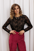 Блузка приталенного силуэта из кружевной сетки. Перед и спинка с рельефами и средним швом. Рукав втачной. Перед и спинка на телесной подкладке.