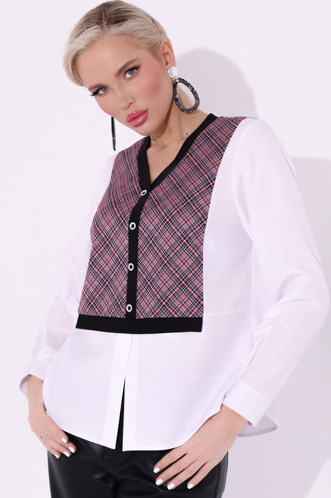 Оригинальная блуза модного кроя. Имитация двойки. Отлично подойдет для офиса.