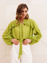 Эффектная нарядная блузка, выполнена из мягкого трикотажа с мерцающим эффектом. Такой дизайн ткани придает необычное переплетение нитей: с изнанки мягкий однотонный трикотаж! Вырез горловины мягкая стойка, переходящая в V-образный вырез с имитацией запаха. По полочке заложены декоративные складки для комфортного прилегания изделия. Низ блузки ассиметричный. Пояс декорирован задрапированным поясом из основной ткани, что зрительно стройнит и скрывает все недостатки фигуры. Рукав в точной, длинный. Спинка приталенная, без особенностей. К блузке предусмотрен съемная брошь, в виде цветка. Отлично сочетается с базовыми однотонными брюками из коллекции Лилиана.