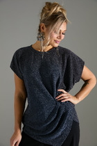 Джемпер свободного силуэта с короткими цельнокроеными рукавами и оригинальным кроем.  Низ джемпера  ассиметричный.