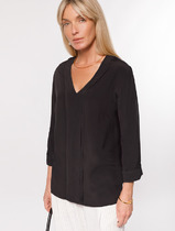 Блуза женская, рукав втачной со сборкой по окату. Рукав расширяется к низу. V-образный вырез с двойным воланом. Низ рукава обработан манжетой на венгерке. В комплекте топ хлопка(100%) на регулируемых бретелях.